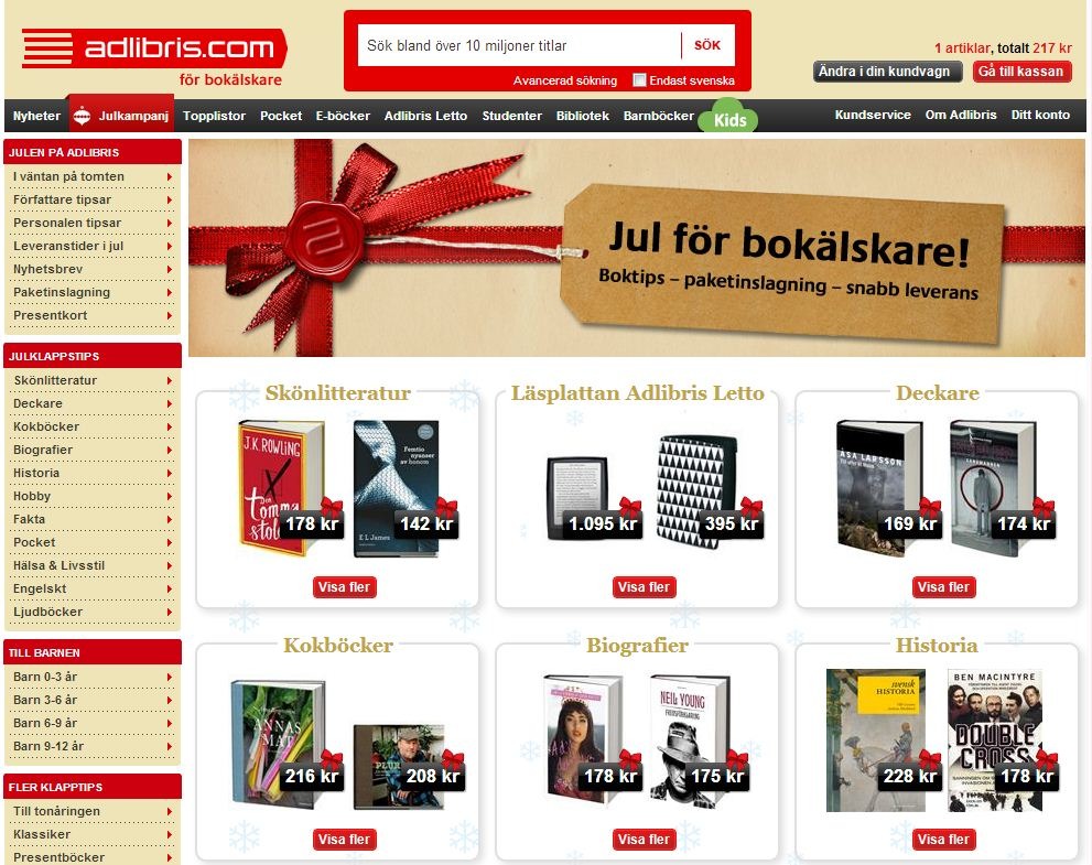 - Det ser ut att bli ännu ett rekordår för Adlibris! Julhandeln tog fart ordentligt i förra veckan och vi räknar med att över 1.5 miljoner böcker från Adlibris kommer ligga under granarna i år.